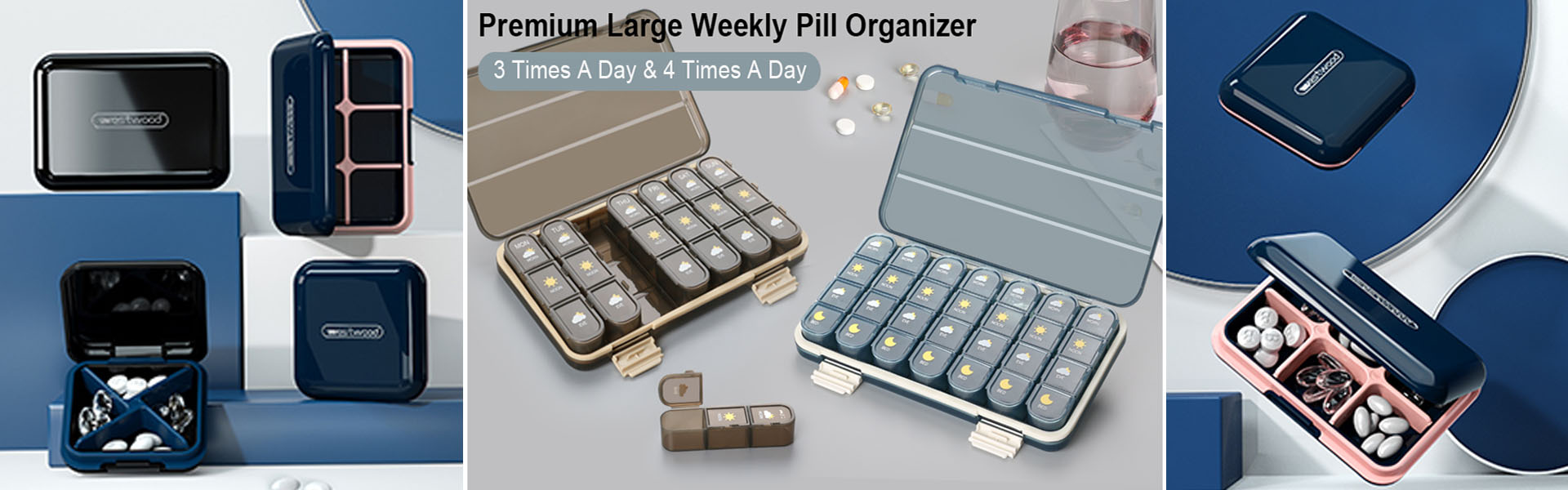 Pill Organizer 4 Times A Day, Pill Box 7 Day, Acedada Weekly Travel Medicine Organizer Box, Large Pill Container Vitamins Case Holder Pill Dispenser, Blue
