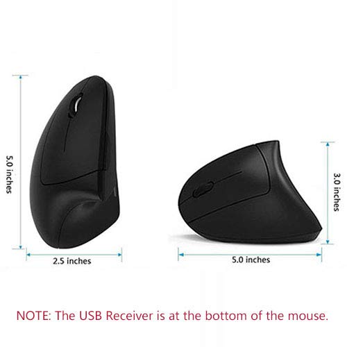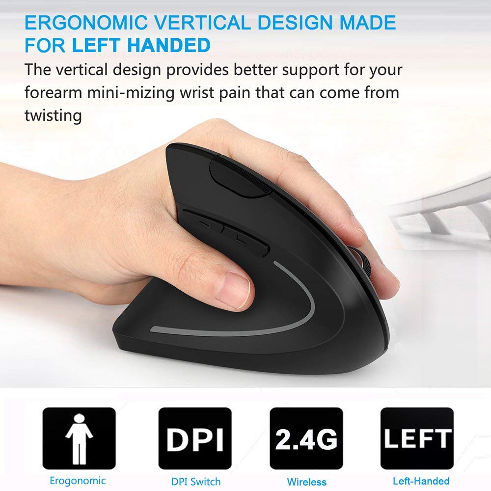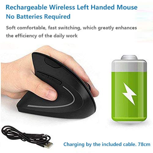 > Left Handed Mouse, Acedada Rechargeable Wireless 2.4G Left Hand Ergonomic Vertical Mouse with Nano Receiver, Less Noise - Black