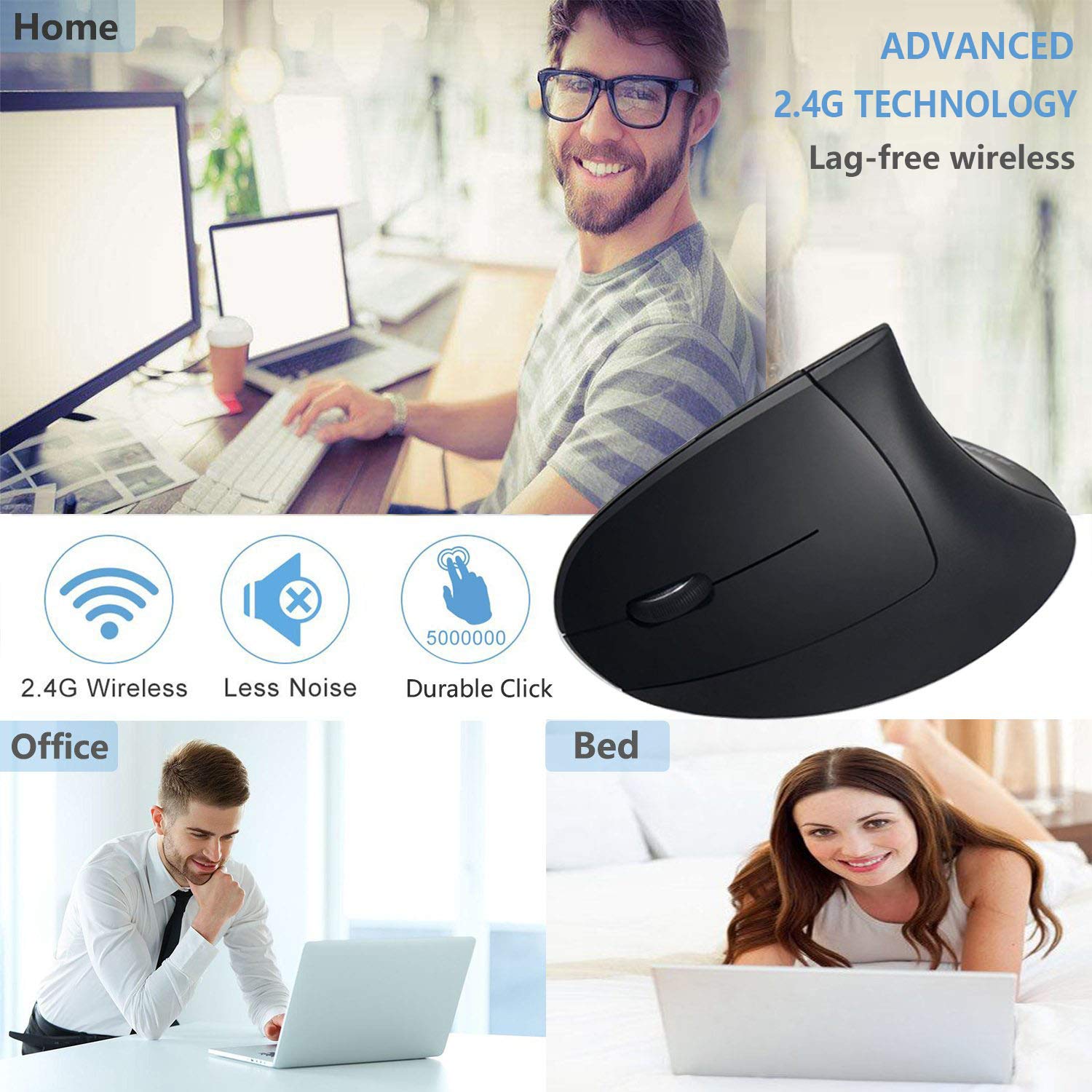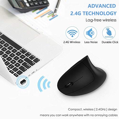 Ergonomic Wireless Mouse, Acedada Rechargeable 2.4G USB Wireless Vertical Ergonomic Mouse, 800/1200 /1600 DPI, for Laptop, Desktop, PC, Computer, Notebook - Black